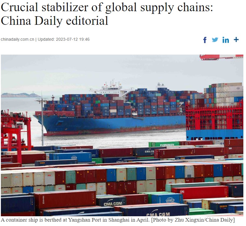 原標(biāo)題:Crucial stabilizer of global supply chains