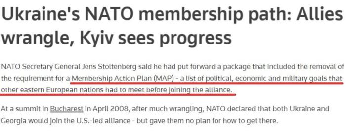 在美國推動下,那次北約峰會接受了烏克蘭加入北約“成員國行動計劃”的申請,并首次承諾“最終會接納烏克蘭為北約成員國”。