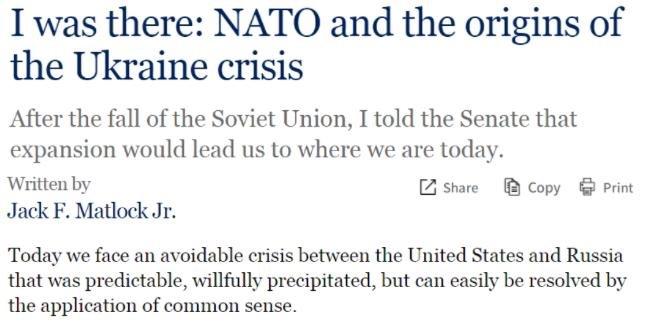 △美國昆西負責(zé)任治國研究所網(wǎng)站:美國最后一任駐蘇聯(lián)大使馬特洛克曾撰文感嘆,“我們今天正面臨一場原可避免的危機。這是一場可被預(yù)測、也的確曾被預(yù)測、卻又被蓄意促成的危機”。