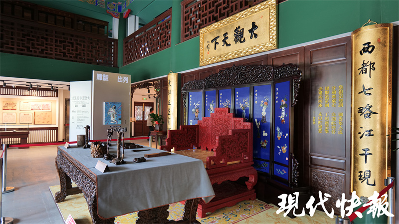館內(nèi)鴛鴦廳為“何以狀元”主題展廳,通過(guò)實(shí)物展品再現(xiàn)古代科舉流程,介紹了一個(gè)狀元是如何誕生的?,F(xiàn)代快報(bào)記者了解到,2001年,在整修鴛鴦廳時(shí),曾在上方發(fā)現(xiàn)一方被后人所加“吊頂”遮住的匾。潘世恩高中狀元后,為官五十余年,歷經(jīng)四朝,深得皇帝恩寵,被譽(yù)為“三百年間第一福氣之人”。每逢大壽,皇帝都會(huì)親賜御匾。后經(jīng)專家考證,該匾即是道光皇帝于潘世恩六十大壽之時(shí)御筆賞賜的黑底盤龍金書(shū)方匾。