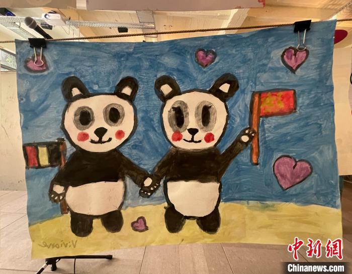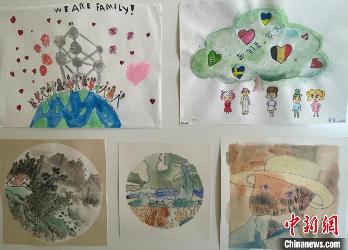 從北京天安門到比利時地標(biāo)建筑原子球塔,從中國大熊貓到梵高畫像,孩子們的筆觸雖稚嫩,卻處處傳遞中西方文化的交融交匯。