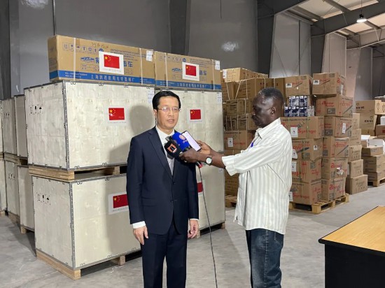 2023年8月2日,中國駐蘇丹使館與蘇丹政府在蘇丹港舉行儀式,順利將中國(陜西)援蘇醫(yī)療隊(duì)提供的4.6噸醫(yī)療器械、耗材、藥品等移交蘇方。張向華臨時(shí)代辦與蘇聯(lián)邦社會(huì)發(fā)展部次長賈邁勒尼爾代表中蘇雙方簽署捐贈(zèng)協(xié)議,蘇聯(lián)邦治理部次長穆阿茲、聯(lián)邦醫(yī)療后勤保障委員會(huì)主席哈利勒及中國港灣公司代表等出席儀式。蘇通社、蘇國家電視臺(tái)、紅海州電視臺(tái)及央視駐蘇報(bào)道員受邀報(bào)道儀式。