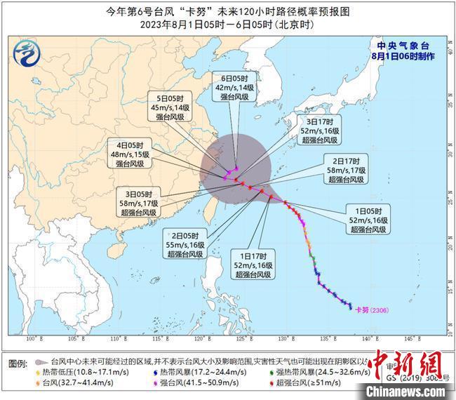 今年第6號臺風(fēng)“卡努”路徑預(yù)測圖。浙江氣象 供圖