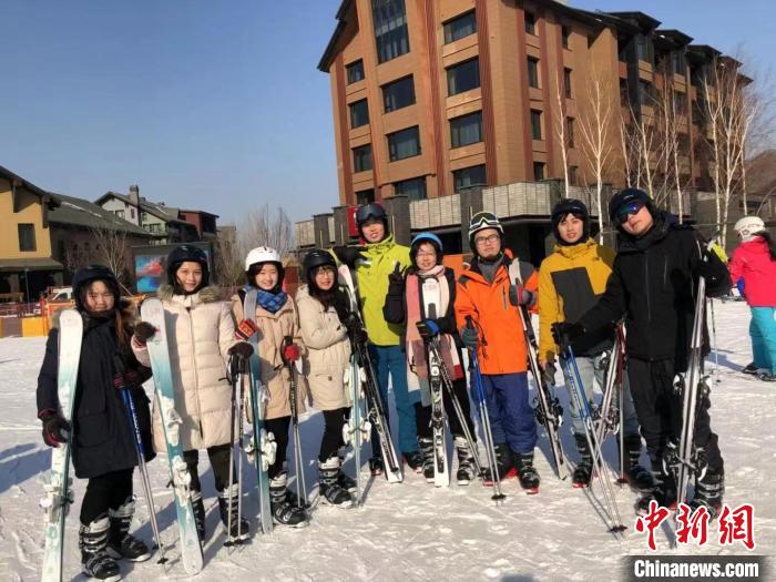 許迪(右三)與臺灣青年在東北體驗滑雪。受訪者 供圖