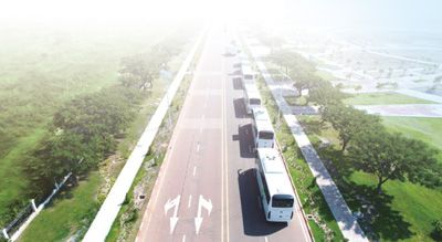老撾萬(wàn)象賽色塔綜合開(kāi)發(fā)區(qū)內(nèi),新能源大巴車有序行駛。