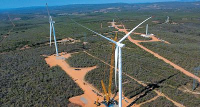 位于巴西巴伊亞州的風(fēng)電項(xiàng)目正在進(jìn)行機(jī)器吊裝。