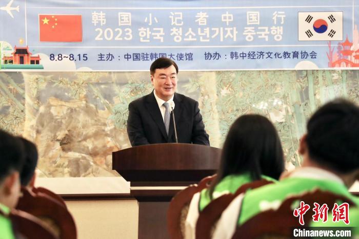 中新網(wǎng)首爾8月8日電 (記者 劉旭)8日,“2023韓國小記者中國行”活動(dòng)在首爾舉行啟程儀式。中國駐韓國大使邢海明及韓中經(jīng)濟(jì)文化教育協(xié)會(huì)理事長申京淑、韓中城市友好協(xié)會(huì)會(huì)長權(quán)起植和來自韓國各地的22名優(yōu)秀青少年學(xué)生出席活動(dòng)。