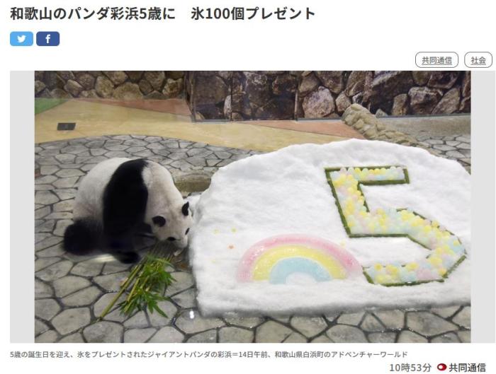 中新網(wǎng)8月14日電 據(jù)日本共同社報(bào)道,8月14日,日本和歌山縣白濱町“冒險(xiǎn)大世界”動(dòng)物園的雌性旅日大熊貓“彩濱”迎來(lái)五歲生日。