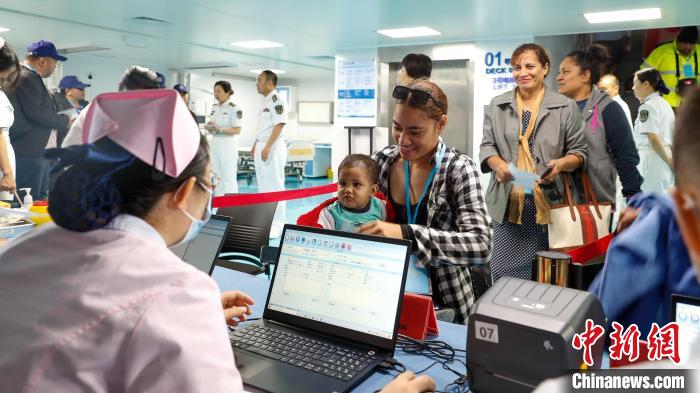 那天,6歲的基里巴斯小男孩林杰克·拉扎茲(Linjkj Raazazi),成為和平方舟執(zhí)行“和諧使命-2023”任務以來的首位外籍兒科患者。經(jīng)過檢查,拉扎茲被確診為上呼吸道感染引起的咽炎,醫(yī)生為他開具了處方并詳細地給予了醫(yī)囑。