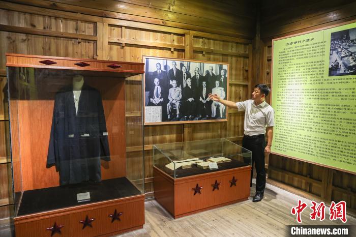 8月11日,梅汝璈第四代后人梅庭軍正在故居內講解“東京審判”的故事。中新社記者 劉力鑫 攝