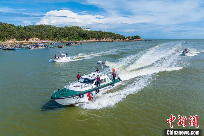 漳州海警局執(zhí)法艇為轄區(qū)漁船保駕護(hù)航。蔡曉曄 攝