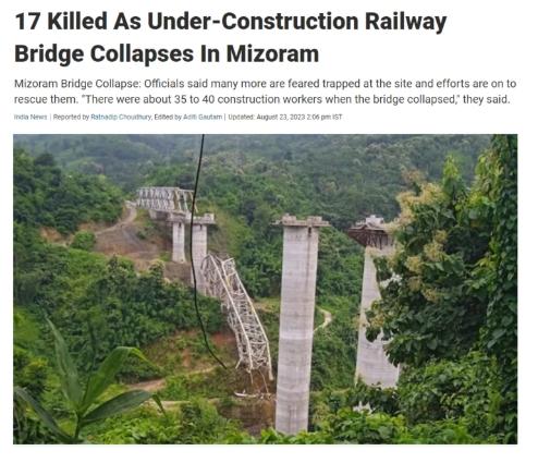 據(jù)報(bào)道,當(dāng)?shù)毓賳T們表示,當(dāng)天上午約10時(shí),米佐拉姆邦塞朗地區(qū)附近一座正在施工的鐵路橋突然倒塌,當(dāng)前仍幾人被困現(xiàn)場,當(dāng)局正努力營救他們。