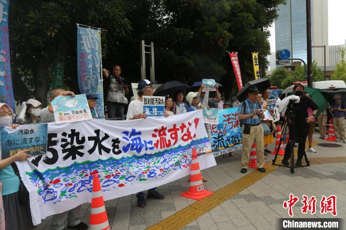 當(dāng)?shù)貢r間22日上午,日本政府宣布,將于8月24日啟動福島核污染水排海。反對核污染水排海的民眾當(dāng)日冒雨聚集在首相官邸前,舉起寫有“勿將核污染水排放入海”的橫幅或標(biāo)語牌,高呼“勿將代價留給未來”“不要污染大海”“聽聽漁民的聲音”等口號,抗議日本政府啟動核污染水排海的決定。