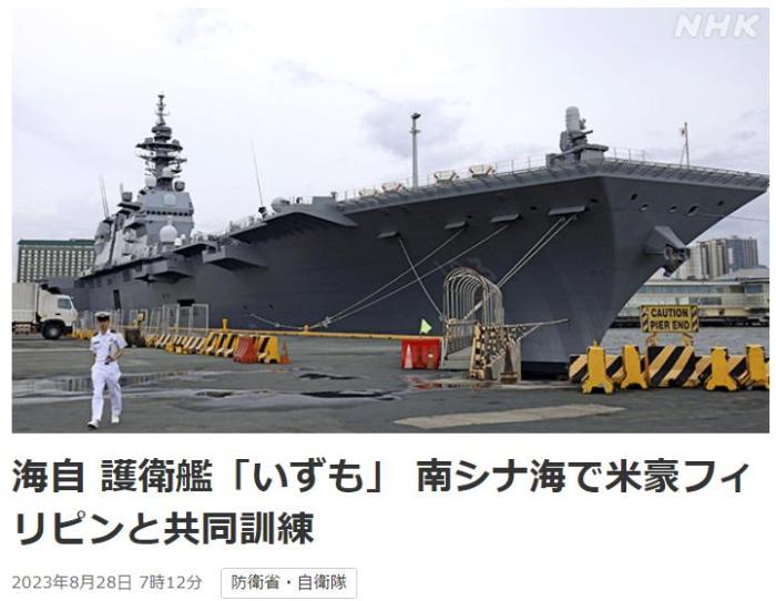 27日當(dāng)天,日本海上自衛(wèi)隊還邀請美、澳、菲的海軍指揮官在“出云”號上舉行典禮。據(jù)介紹,這是“出云”號首次??狂R尼拉。
