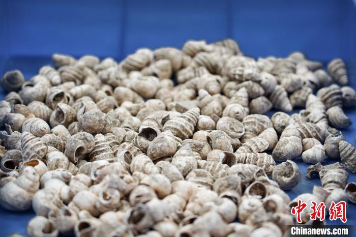 在廣西柳州白蓮洞洞穴科學博物館庫房內(nèi),文物管理員梁媚連日來一直在用毛刷清洗螺螄殼化石,這些螺螄殼化石距今已有兩萬六千年的歷史。“在庫房內(nèi)保存的所有白蓮洞出土物件中,要數(shù)螺螄殼的數(shù)量最多,可以想象白蓮洞人是十足的‘嗦螺’愛好者?!绷好恼f。