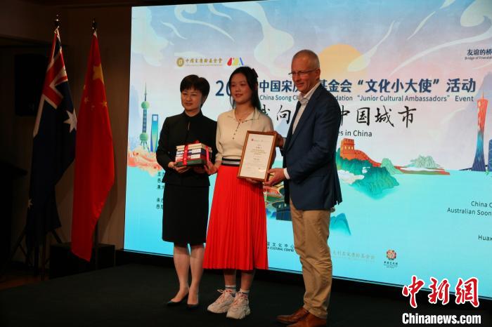 當(dāng)?shù)貢r(shí)間9月2日,悉尼中國文化中心與澳大利亞宋慶齡基金會(huì)共同舉辦的2023中國宋慶齡基金會(huì)“文化小大使”澳大利亞評選暨頒獎(jiǎng)活動(dòng)在悉尼成功舉辦。圖為王書羽(左)和保羅·弗萊徹(右)為金獎(jiǎng)獲得者頒獎(jiǎng)。中新社記者 顧時(shí)宏 攝