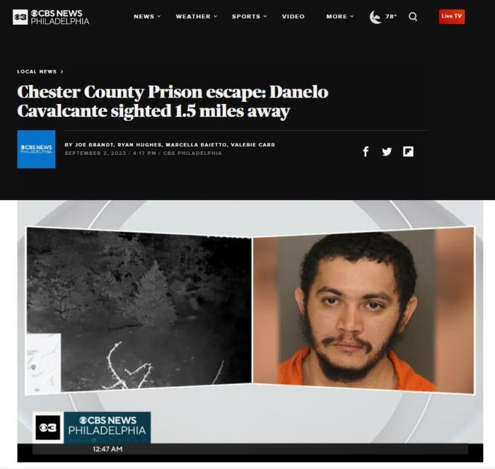 當(dāng)?shù)貢r(shí)間9月1日,切斯特縣地方檢察官表示,卡瓦爾坎特被認(rèn)為正試圖向南逃亡,但目前沒有證據(jù)表明他已經(jīng)離開了附近區(qū)域,或正受到他人幫助。