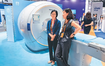 飛利浦展區(qū)展示的新一代無液氦磁共振產(chǎn)品。