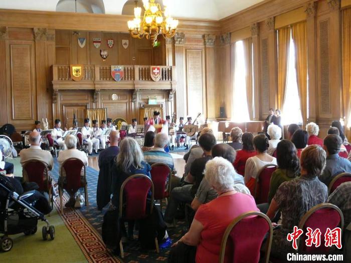 2008年9月25日,上海城隍廟道教樂團在英國利茲市政廳演出現場?!?上海市道教協會供圖)