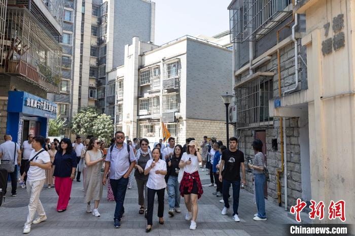 9月6日至10日,中亞五國(guó)青年代表團(tuán)一行20人赴渝參訪。圖為代表團(tuán)參訪重慶兩江新區(qū)邢家橋社區(qū)?!£惤?攝