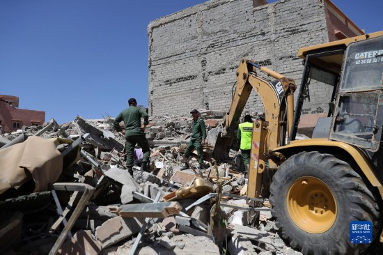 摩洛哥內(nèi)政部說,尋找廢墟下受困人員的救援行動正在進行。