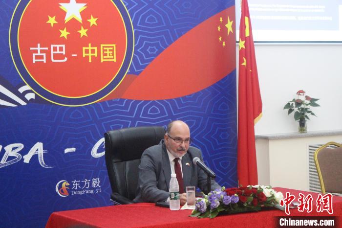 古巴駐華大使白詩德在古巴駐華大使館13日舉行的媒體見面會(huì)上發(fā)言?!√K婧欣 攝
