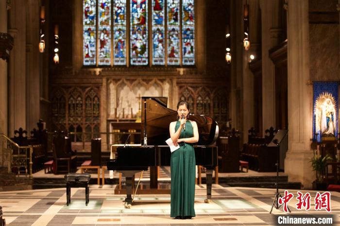 9月上旬,“東風(fēng)”系列三音樂會(huì)在倫敦舉辦,來自不同國家和地區(qū)的9位杰出歌唱家分別用中文為100多位觀眾獻(xiàn)上了20首詩詞及民族民間藝術(shù)歌曲。圖為活動(dòng)主辦者、旅英青年歌唱家錢亦萱主持音樂會(huì)。 Lexie Lin 攝