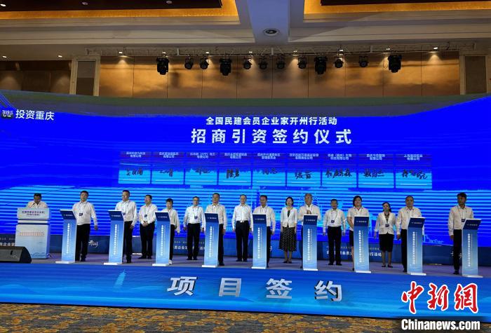 圖為全國(guó)民建會(huì)員企業(yè)家開州行活動(dòng)招商引資簽約現(xiàn)場(chǎng)?!≈行戮W(wǎng)記者張燕 攝