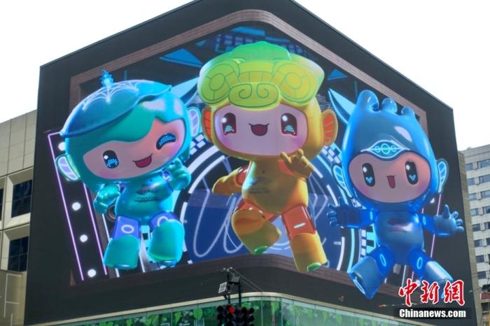 資料圖:4月1日,亞運(yùn)吉祥物裸眼3D宣傳片在杭州市西湖區(qū)文三數(shù)字生活街區(qū)開(kāi)播。中新社記者 錢晨菲 攝