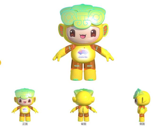 “琮琮”的設(shè)計(jì)靈感源自良渚玉琮,代表世界遺產(chǎn)良渚古城遺址。它全身以源自大地、象征豐收的黃色為主色調(diào),頭部裝飾的紋樣取自良渚文化的標(biāo)志性符號(hào)“神人獸面紋”,意寓“不畏艱險(xiǎn)、超越自我”?!扮眻?jiān)強(qiáng)剛毅、敦厚善良、體魄強(qiáng)健、熱情奔放,擅長(zhǎng)力量型與傳統(tǒng)項(xiàng)目,如武術(shù)、舉重等。