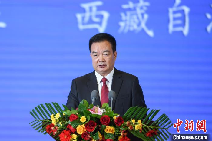 圖為西藏自治區(qū)人民政府主席嚴(yán)金海主持開(kāi)幕式?!∝暩聛?lái)松 攝