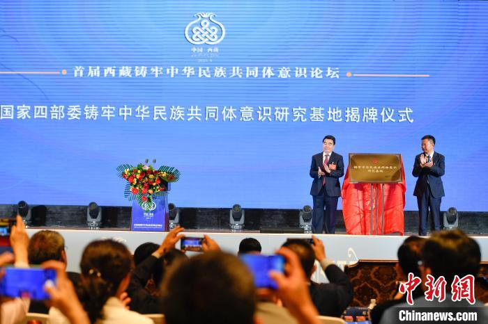 開(kāi)幕式上,段毅君和西藏自治區(qū)黨委常委、宣傳部部長(zhǎng),西藏自治區(qū)著力創(chuàng)建全國(guó)民族團(tuán)結(jié)進(jìn)步模范區(qū)專項(xiàng)組副組長(zhǎng)汪海洲為國(guó)家四部委“鑄牢中華民族共同體意識(shí)研究基地”揭牌。