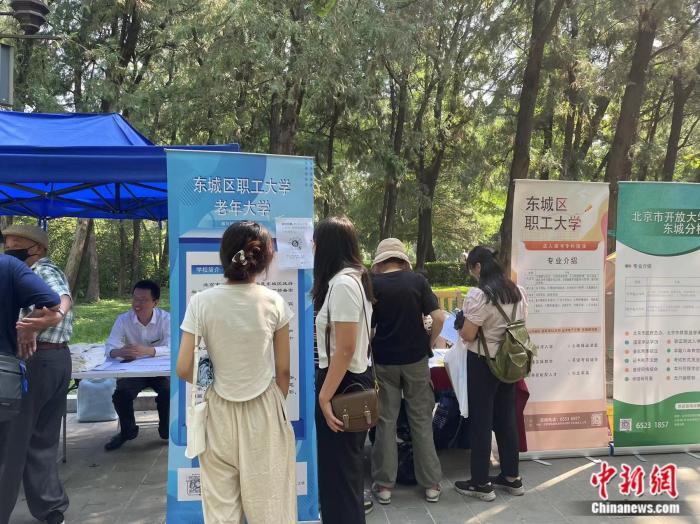 不久前,北京地壇書市里設(shè)置的東城區(qū)老年開放大學招生點位在社交媒體上意外出圈,許多年輕人慕名前去。