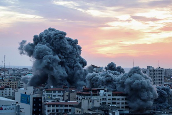 這是10月7日在加沙城拍攝的以色列軍隊(duì)空襲后濃煙滾滾的場(chǎng)面。(新華社發(fā),里澤克·阿卜杜勒賈瓦德攝)