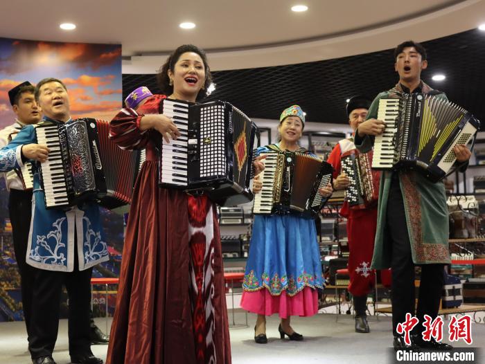 近日,記者走進(jìn)伊寧市六星街,由錫伯族、哈薩克族、俄羅斯族、漢族、維吾爾族等音樂愛好者組成的手風(fēng)琴樂隊正在表演?!≈行律缬浾?薄雯雯 攝
