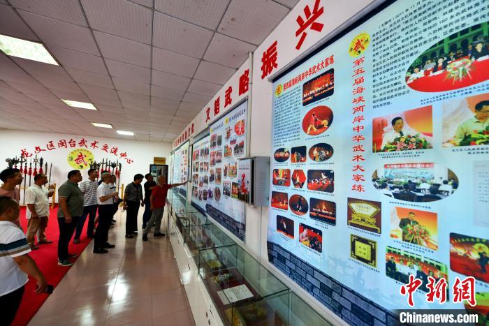 9月20日,福建省漳州市龍文區(qū)閩臺武術(shù)交流中心內(nèi)的圖文展示向參觀者展現(xiàn)了兩岸武術(shù)文化的一脈相承。 中新社記者 張斌 攝
