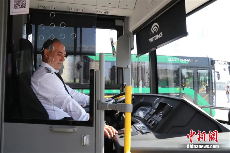 2023年7月4日,來自中國的宇通客車批量交付儀式在哈薩克斯坦首都阿斯塔納獨立廣場舉行。張碩 攝