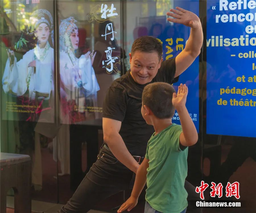 2023年9月,柯軍現(xiàn)場教授海外小朋友體驗(yàn)昆曲一招一式??萝?供圖