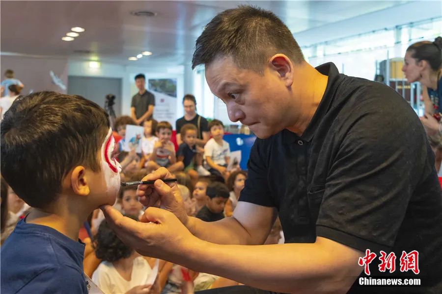 2023年9月赴法演出期間,昆曲走進(jìn)當(dāng)?shù)氐牟┪镳^、大學(xué)校園以及中國文化中心的工作坊。圖為柯軍帶領(lǐng)當(dāng)?shù)貙W(xué)生體驗(yàn)昆曲扮相??萝?供圖