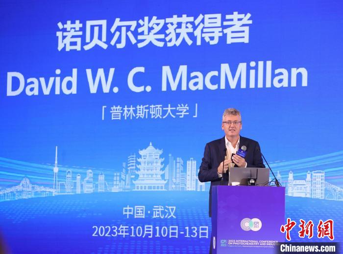 10月11日,2021年諾貝爾化學(xué)獎(jiǎng)獲得者戴維·麥克米倫(David W. C. MacMillan)在2023年國(guó)際光化學(xué)技術(shù)與產(chǎn)業(yè)大會(huì)上發(fā)言?!垥?攝