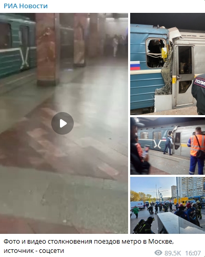 莫斯科市長索比亞寧在社交媒體上稱,事故導致一名列車司機受傷,正在為其提供醫(yī)療救助;沒有乘客重傷。