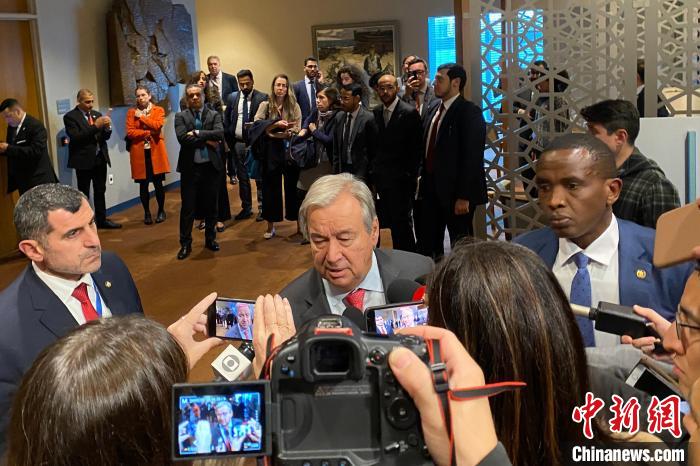 當(dāng)?shù)貢r(shí)間10月13日,聯(lián)合國(guó)秘書(shū)長(zhǎng)古特雷斯在安理會(huì)就中東局勢(shì)進(jìn)行緊急磋商后,在紐約聯(lián)合國(guó)總部回答記者提問(wèn)。 中新社記者 王帆 攝