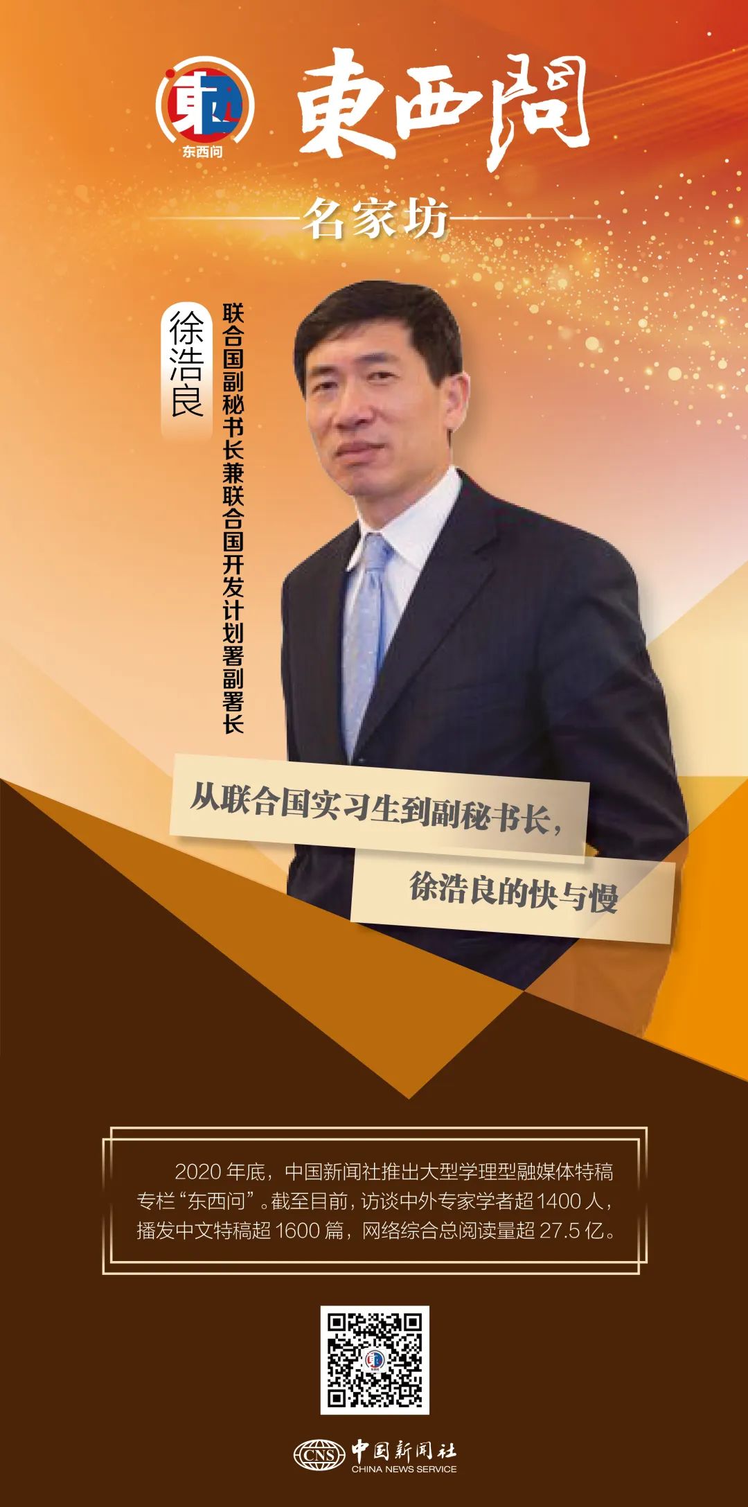 中新社北京10月16日電 題:從聯(lián)合國實習生到副秘書長,徐浩良的快與慢