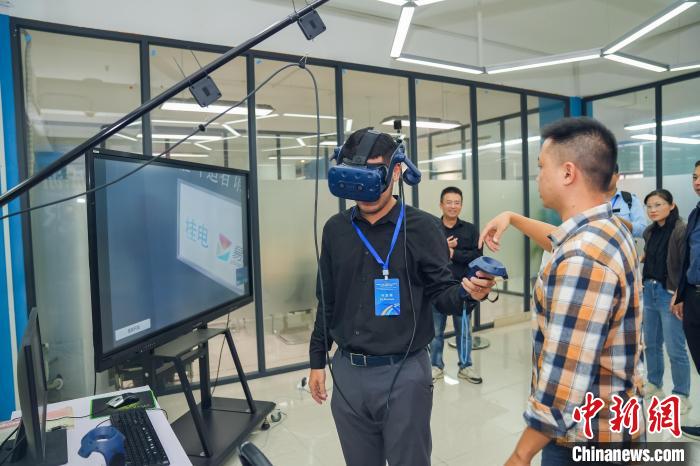 10月12日,柬埔寨青年代表在廣西桂林一家科技企業(yè)體驗(yàn)VR技術(shù)。中國(guó)(廣西)國(guó)際青年交流學(xué)院供圖