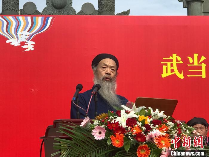 10月21日,武當(dāng)山紫霄宮方丈升座暨癸卯(2023)年全真派道士傳戒活動(dòng)典禮在湖北省丹江口市靜樂宮舉行。中國道教協(xié)會(huì)會(huì)長李光富道長升座武當(dāng)山紫霄宮方丈。圖為李光富致答謝辭。中新網(wǎng)記者 陳建新 攝