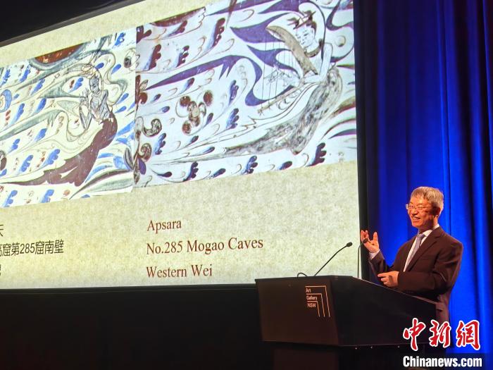 中新社悉尼10月23日電 (記者 顧時宏)悉尼中國文化中心與澳大利亞新南威爾士州美術(shù)館合作,于10月23日邀請敦煌研究院學(xué)術(shù)委員會主任委員趙聲良為悉尼藝術(shù)愛好者們帶來一場既生動又深刻的敦煌石窟藝術(shù)講座,吸引了近300位藝術(shù)愛好者到場聆聽。