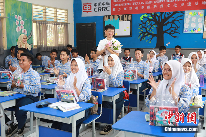 當(dāng)天,雅萬高鐵動車組科普文化交流基地公益課堂進(jìn)校園暨教學(xué)物資捐贈交接儀式在該中學(xué)舉行,中車四方股份公司向?qū)W校捐贈了電腦、音響系統(tǒng)等教學(xué)物資。作為中國高鐵技術(shù)專家,中車四方雅萬高鐵動車組主任設(shè)計師張方濤走進(jìn)教室,為學(xué)生們帶來高鐵科普課,講解雅萬高鐵的先進(jìn)科技。