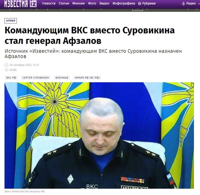 俄新社在其履歷中寫(xiě)到,2023年8月,阿夫扎洛夫再次被任命為俄空天軍代理總司令,2023年10月20日,被任命為俄空天軍總司令。
