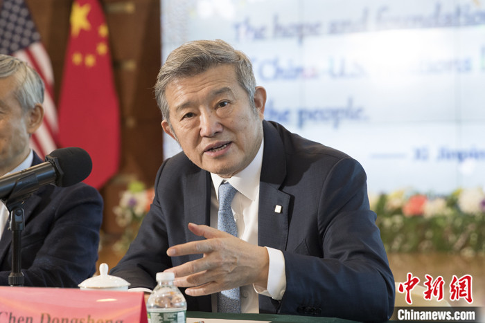 當(dāng)?shù)貢r間10月25日,參加清華大學(xué)和美中關(guān)系全國委員會共同舉辦的“中美民眾對話”活動的部分代表來到中國駐紐約總領(lǐng)事館,就中美經(jīng)貿(mào)關(guān)系、科研合作、人文交流等回答記者提問。被問及中國企業(yè)在美國投資的相關(guān)問題時,泰康保險集團(tuán)董事長陳東升表示,貿(mào)易和投資對中美關(guān)系十分重要。在美國投資,比如康復(fù)醫(yī)療是一個大的合作方向,我們歡迎美國的企業(yè)來合作,這是互利互惠的過程。 中新社記者 廖攀 攝
