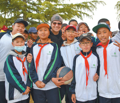 2023年5月,中國(guó)外文局語(yǔ)言顧問拉斐爾(中)在西藏拉薩與當(dāng)?shù)貙W(xué)生合影留念。